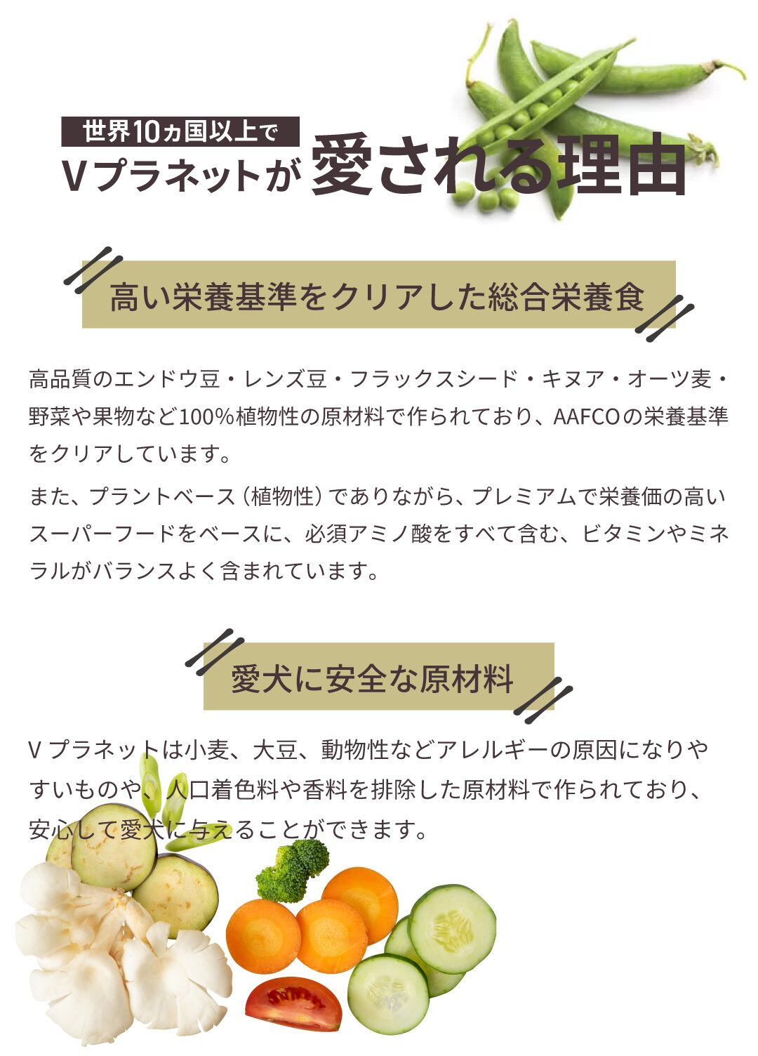 完全植物由来(ヴィーガン/プラントベース)で、アレルギーになりやすい成分や人工着色料・香料は含みませんので、愛犬の日々の食事として安心して与えることができます。